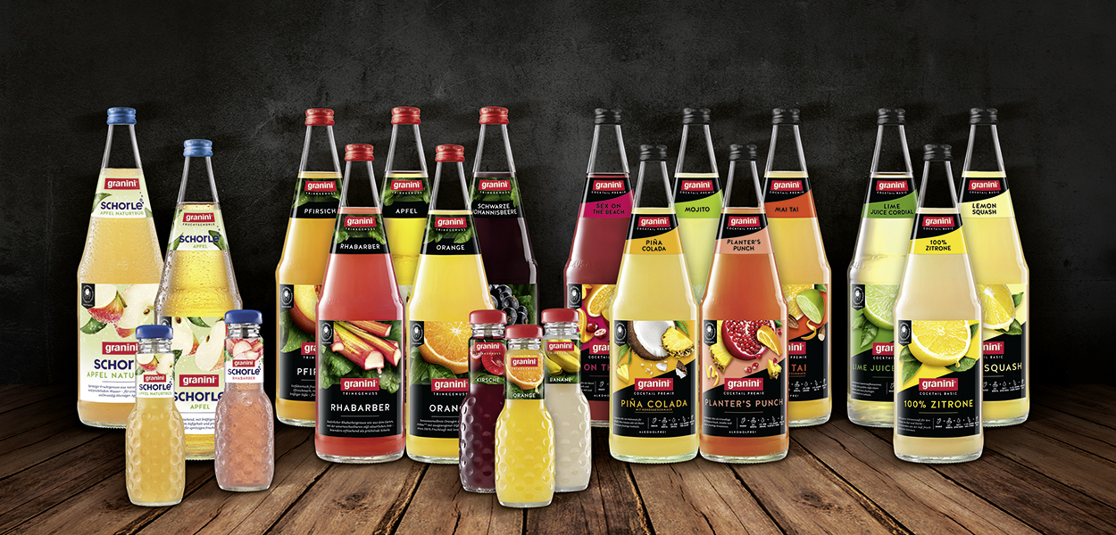 „Ein Blick, ein Griff – das ist die Idee hinter dem Farbkonzept", erläutert Katja Weinerth, Senior Managerin granini HoReCa. „Das schwarze Premiumdesign unserer 1,0 l Labels erfüllt dabei die Anforderung der Gastronomie nach einer dezenten, aber hochwertigen Anmutung im Back Bar Bereich." Auch auf weitere gastrospezifische Anforderungen geht das neue Label ein, so stellt es produktspezifische Infos (wie z.B. vegan, ohne Konservierungsstoffe, ohne künstliche Farbstoffe) heraus und beschreibt die Fruchtsorten sensorisch. Zudem finden Gastronomen auf den Labels einige Cross-Referenzen und Verwendungshinweise für Produkte mit Link auf die spezielle granini Gastro-Website. Auch die granini Nachhaltigkeitsstrategie ist durch das granini Nachhaltigkeitssiegel und einen QR-Code integriert und wird auf der Homepage mittels eines ansprechenden Videos und weiteren Informationen erläutert.