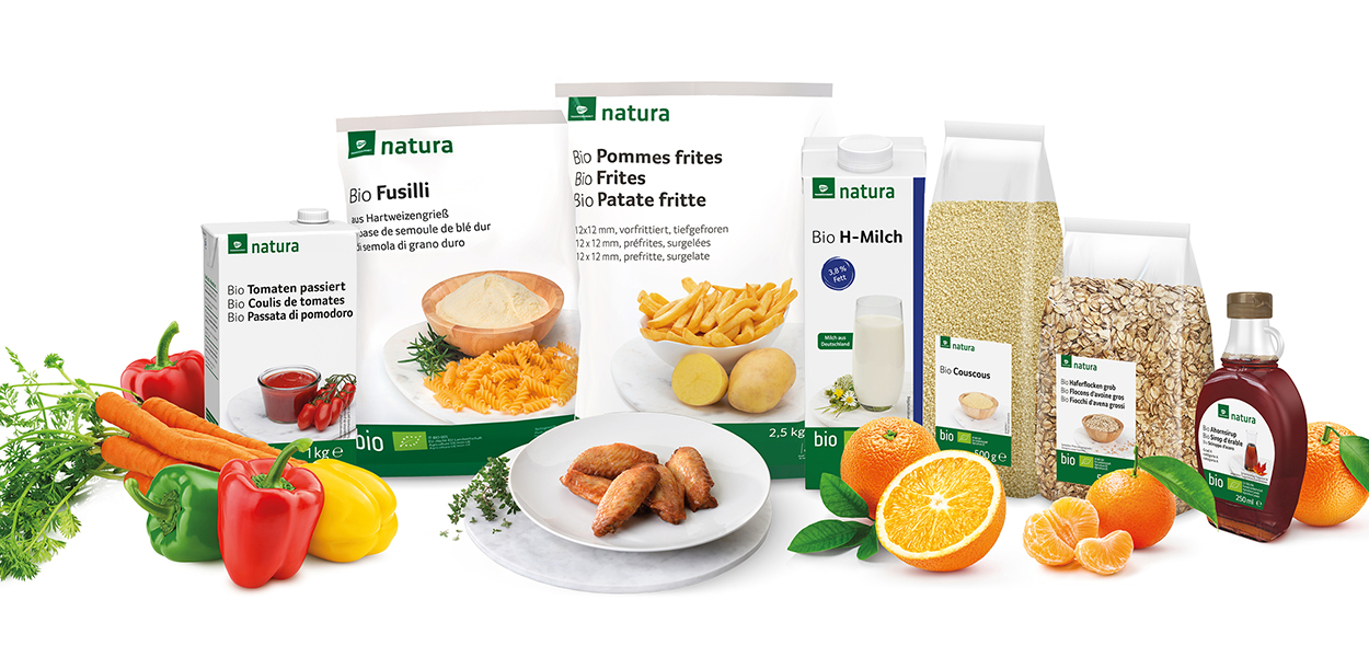 Die Bio-Eigenmarke Natura, die bereits im April mit einem umfassenden Sortiment von 120 Artikeln an den Start geht und bis Jahresende mehr als 200 Artikel anbieten will, richtet sich an Küchenprofis, die sich aus unterschiedlichsten Gründen auf ein gesichertes Bio-Vollsortiment verlassen wollen und müssen. Mit ihren drei Kerneigenschaften BioLogisch – BioSicher – BioGünstig trumpft Natura mit überzeugenden Argumenten: Das Bio-Vollsortiment orientiert sich an den Kundenbedürfnissen und bietet Bio- und EU-Ökosiegel zertifizierte Produkte zu bezahlbaren, marktgerechten Preisen. Das Sortiment reicht von Teigwaren, Reis und Beilagen über Obst und Gemüse, Molkereierzeugnisse und Fleischwaren bis hin zu Konserven, Getränken und Süßungsmitteln.