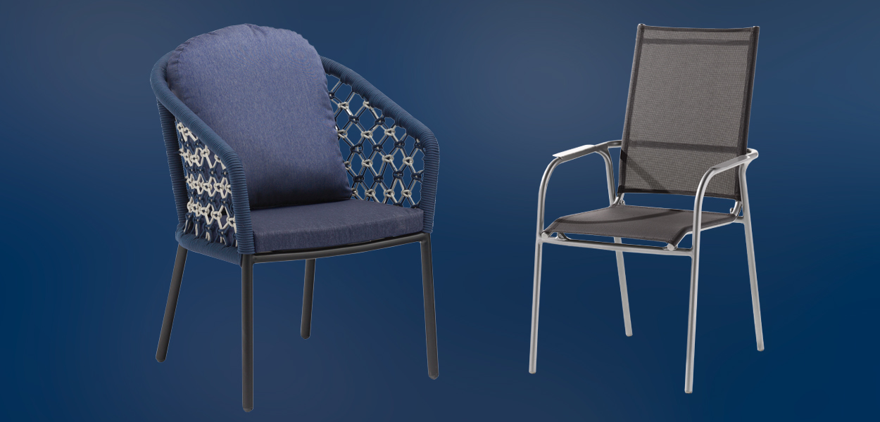 Zu den Neuheiten im Sortiment zählt der leichte und trotzdem stabile SIRIO-Stapelsessel, dem ein raffiniertes Design Eleganz verleiht. Sanft geschwungene Rundrohre sowie Aluminium-Gussteile sorgen für fließende Übergänge. Grazil ausgeformte Armlehnenaufsätze erhöhen nach Angaben des Herstellers mit ihrer angenehmen Haptik den Sitzgenuss. Die Aluminium-Gestelle sind mit einer Polyesterbeschichtung versehen. Sitz- und Rückenflächen haben eine hochwertige, strapazierfähige und UV-stabile Textilux-Kunstfaserbespannung.