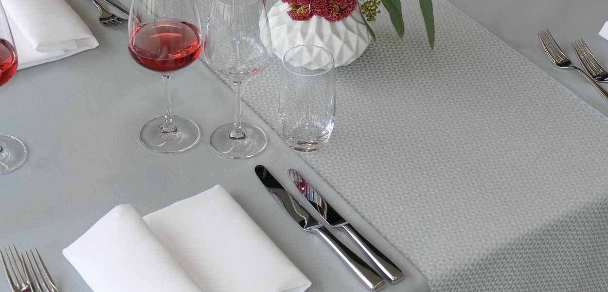 Das Dessin „Triangolo" – eine raffinierte geometrische Formensprache – ergänzt die beliebte Wäschekrone-Tischwäsche Linie „Mix & Match" und ist in den Farben Beige, Pistazie, Türkis, Blaugrün, Marine, Gelb und Grau erhältlich. „In Kombination mit den dazu passend unifarbenen Kissenhüllen erlaubt sie eine gleichermaßen stilvolle wie abwechslungsreiche Inszenierung des Gastraums", heißt es im Hause Wäschekrone. „Dank ihrer ausgezeichneten Lichtechtheit ist die Tischwäsche zudem perfekt für den Einsatz im Außenbereich geeignet. Neben der äußerst angenehmen Haptik und spannenden Optik überzeugt die Tischwäsche aus 100 Prozent Dralon durch sehr gute Pflegeeigenschaften." Lieferbar ist „Triangolo" in den Standardgrößen 35 x 48 cm bis 130 x 220 cm sowie 155 cm (rund) und in individuellen Sondergrößen bis 155 cm Breite.