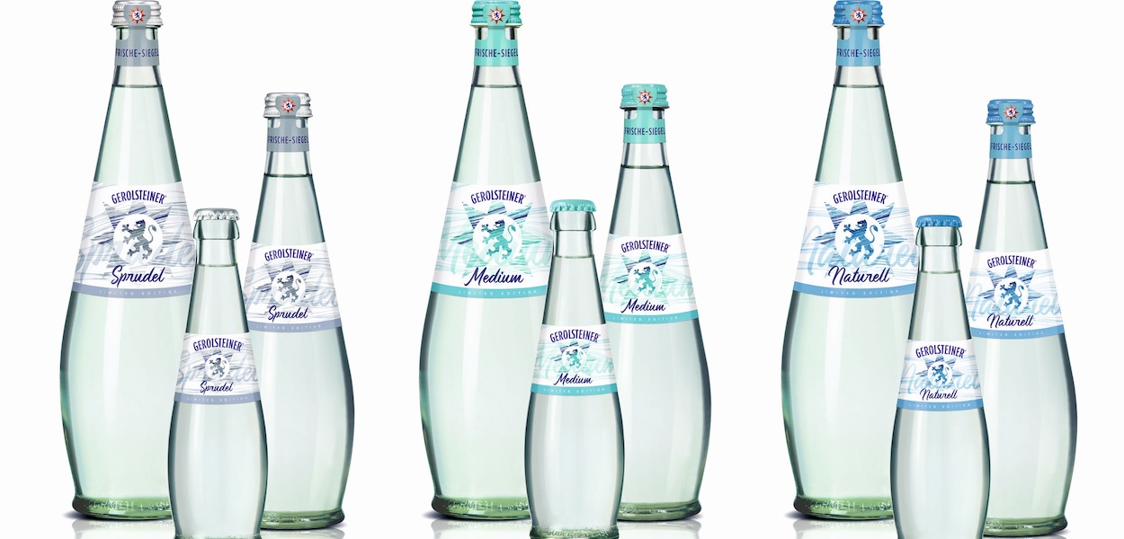 Das klassische Gerolsteiner Glas-Mehrweg-Gourmetgebinde (0,75 Liter, 0,5 Liter und 0,25 Liter) wird für die Aktion mit Etiketten in einem schraffierten Look ausgestattet. Die vertrauten Etikettenfarben für die Mineralwassersorten Gerolsteiner Sprudel (grau), Gerolsteiner Medium (grün) und Gerolsteiner Naturell (blau) werden beibehalten. Das soll für die schnelle Wiedererkennung der Varianten sorgen.