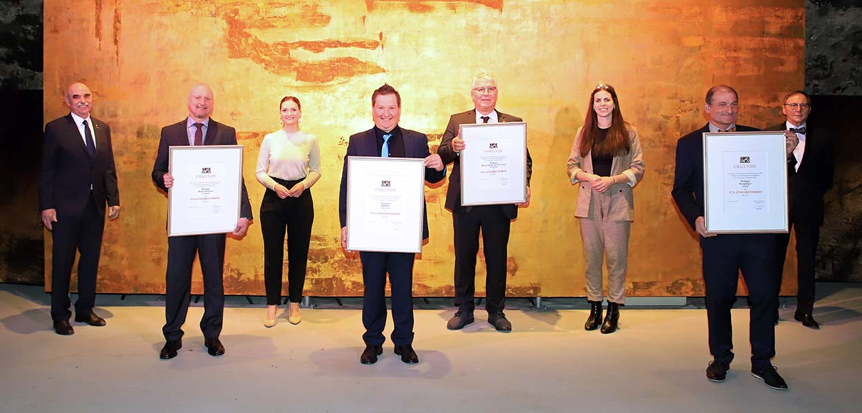 Gerlach übergab die höchste Auszeichnung im Freistaat Bayern für dauerhafte hervorragende Ergebnisse bei der Fränkischen Weinprämierung an das Weingut Manfred Braun aus Nordheim (bis zu 5 Hektar), das Weingut Kreglinger aus Segnitz (über 5 bis 15 Hektar), das Weingut Höfling aus Eußenheim (über 15 bis 50 Hektar) und das Weingut Bürgerspital zum Hl. Geist in Würzburg (über 50 Hektar).