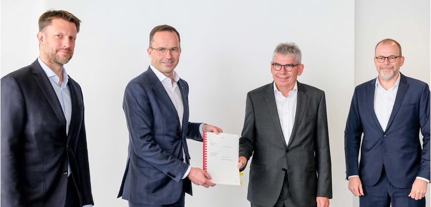 Von links nach rechts: Kai Gramberg, Senior Vice President Deutsche Messe AG, Dr. Jochen Köckler, CEO Deutsche Messe AG, Jürgen Vogl, Vorsitzender der Geschäftsführung bei Aramark, Gerald Rosendahl, Geschäftsführer Sport-, Freizeit- und Messegastronomie bei Aramark. Foto: Deustche Messe AG