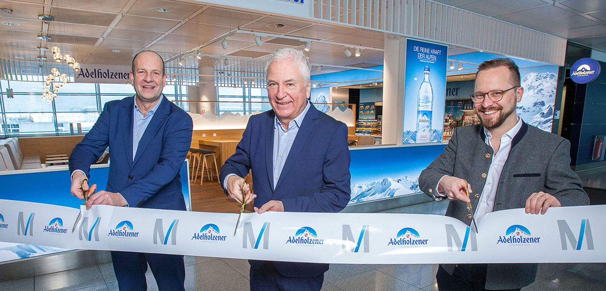 Die neugestaltete Bar wurde in kleinem Rahmen durch ein symbolisches Ribbon-Cutting von Vertretern der Flughafen München GmbH (FMG), der FMG-Gastronomie-Tochtergesellschaft Allresto und des Namengebers, der Adelholzener Alpenquellen GmbH, wiedereröffnet.