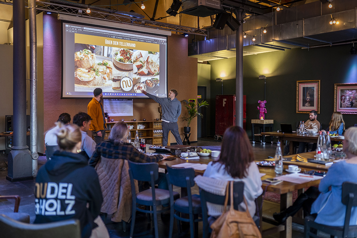 In Düren heißt es seit dem Sommer 2020 immer häufiger: Wir treffen uns im Nu! "Nu" steht dabei als Abkürzung für die Pastabar Nudel & Holz der beiden Gründer Bastian und Mats Geuenich. Hier gibt es den italienischen Klassiker handgemacht und in all seiner Vielfältigkeit: Mehr als 1.000 verschiedene Varianten und Kombinationen sind im Baukastenprinzip aus Pasta, Sauce und Toppings ganz nach individueller Vorliebe bestellbar.