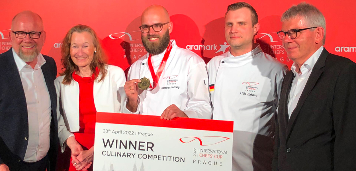Im Finale um den Internationalen Chefs' Cup 2022 von Aramark sind am 28. April neun Länder gegeneinander angetreten. Henning Hartwig, Küchenleiter bei der Service- und Betriebsgesellschaft Heidehof mbH in Stuttgart, und sein Assistent, Attila Bakony, Sous Chef bei SAP in Walldorf, holten den Pokal beim Finale in Prag nach Deutschland. Der zweite Platz geht an Tschechien, Platz drei an das erstmals teilnehmende Team aus Lateinamerika. Auf Platz vier stehen gemeinsam Spanien, Belgien/Luxemburg, England, Irland, Kanada und Südkorea.