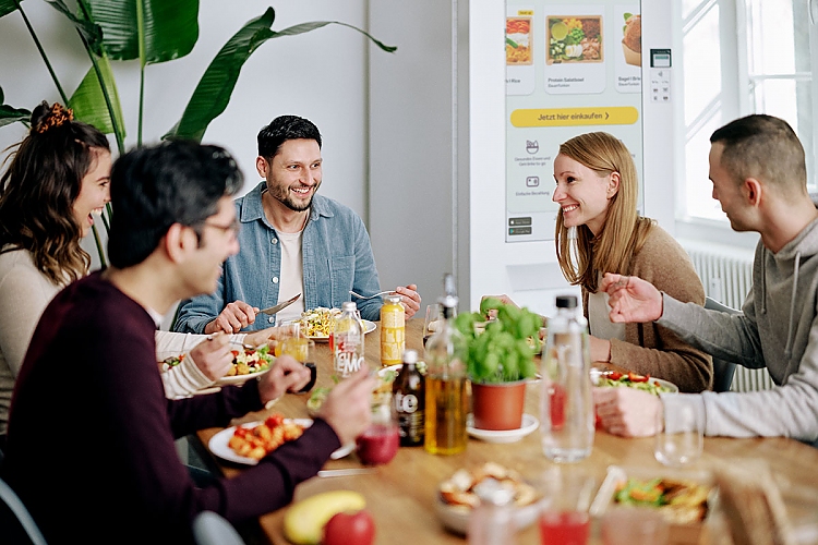 Die KI-gestützten Automaten bieten über 300 wechselnde Hauptgerichte, deren Zusammenstellung laufend an die Bedürfnisse der Kunden angepasst wird. Die Speisenbereitstellung erfolgt ohne Personalbindung oder lange Vorlaufzeiten. Dies ermöglicht auch kleinen und mittleren Unternehmen ein kosteneffizientes Verpflegungsangebot auf hohem Niveau, ganz unabhängig von Betriebsgröße oder Schichtzeiten.
