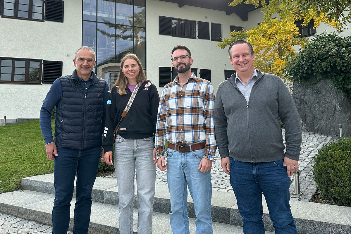 Die Partnerschaft zwischen Franziska Preuß und Alpenhain wird auch in der kommenden Saison fortgeführt. V.l.n.r.: Stephan Hemberger, Leiter Vertrieb und Marketing bei Alpenhain, Sascha Gress, Leiter Marketing bei Alpenhain, Franziska Preuß, Biathletin, Franziska Wimmer, Brand Managerin. Fotos: Alpenhain