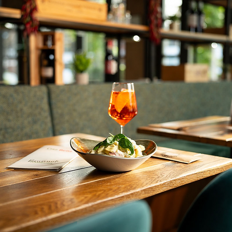 Das Angebot basiert auf frischen Zutaten, original italienischen Rezepturen und einer klaren Orientierung an Qualität und Modernität. Die Gäste erwarten Pizza, Pasta, Insalata und Dolci, ergänzt durch eine sorgfältige Auswahl an Getränken. Das Restaurant verfügt über eine gut ausgestattete Bar, die klassische und moderne Drinks auf hohem Niveau anbietet und den Standort auch am Abend zu einem attraktiven Treffpunkt macht. Darüber hinaus stärkt Ciao Bella den Aperitivo-Gedanken, der die italienische Genusskultur in den frühen Abendstunden widerspiegelt. Immer mittwochs und donnerstags lädt das Restaurant von 16 bis 19 Uhr zur Aperitivo Time ein – mit einem ausgewählten Sortiment italienischer Spritz-Varianten.