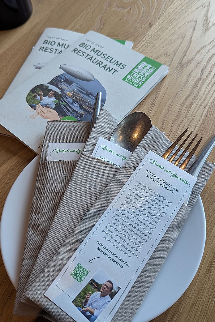 Die Resonanz der Gäste sei eindeutig, was sich am großen Interesse und begeisterten Rückmeldungen zeige. Tress selbst haben es besonders die Messer angetan. "Ich mag den Gedanken, mir vorzustellen, wer damit schon gegessen hat und in welchen Häusern die Messer vorher im Einsatz waren." Sein Appell an Kolleginnen und Kollegen in der Gastronomie ist klar: "Nachhaltigkeit darf kein PR-Gag sein. Gäste merken sehr schnell, ob ein Konzept authentisch ist. Wer sich ernsthaft auf den Weg zu nachhaltigem Genuss machen möchte, geht mit dem Second Life Besteck von WMF einen wichtigen Schritt."