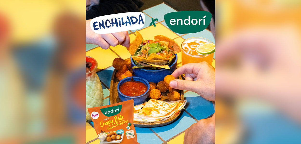 Neues Menü-Highlight zum veganen Jahresstart: endori, Hersteller pflanzlicher Fleischalternativen, startet zum Veganuary eine neue Kooperation mit der mexican kitchen & bar Enchilada. Die Gastro-Marke listet die neuen endori Crispy Balls Chicken Cheese Style unmittelbar nach deren Marktstart als Aktionsprodukt in allen 22 Enchilada-Restaurants.