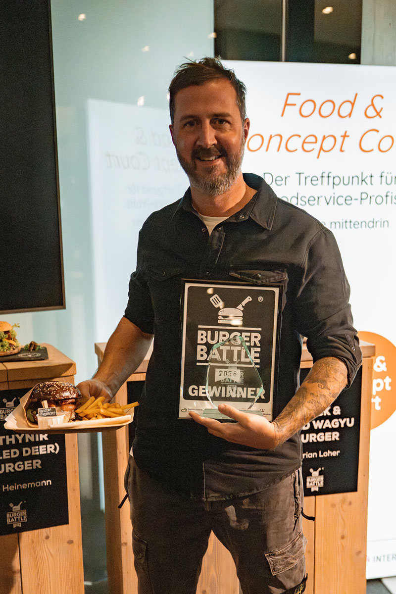 Der Gewinner des ersten deutschen Burger Battles steht fest: Tobias Flohr von Foodtruck Catering Flohr aus Sigmaringen überzeugte beim großen Live-Finale auf der Intergastra in Stuttgart mit seinem kreativen Burger "Der falsche Smash" die hochkarätige Jury und setzte sich gegen fünf starke Mitbewerber durch.