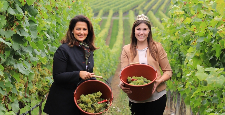 Die Weinlese 2021 in Franken ist jetzt offiziell eröffnet: Am Donnerstag, dem 16. September 2021, schnitt die Bayerische Landwirtschaftsministerin Michaela Kaniber zusammen mit der 64. Fränkischen Weinkönigin Carolin Meyer und dem Präsidenten des Fränkischen Weinbauverbandes, Artur Steinmann, an der Panorama-Plattform in Nordheim am Main die ersten Trauben des...
